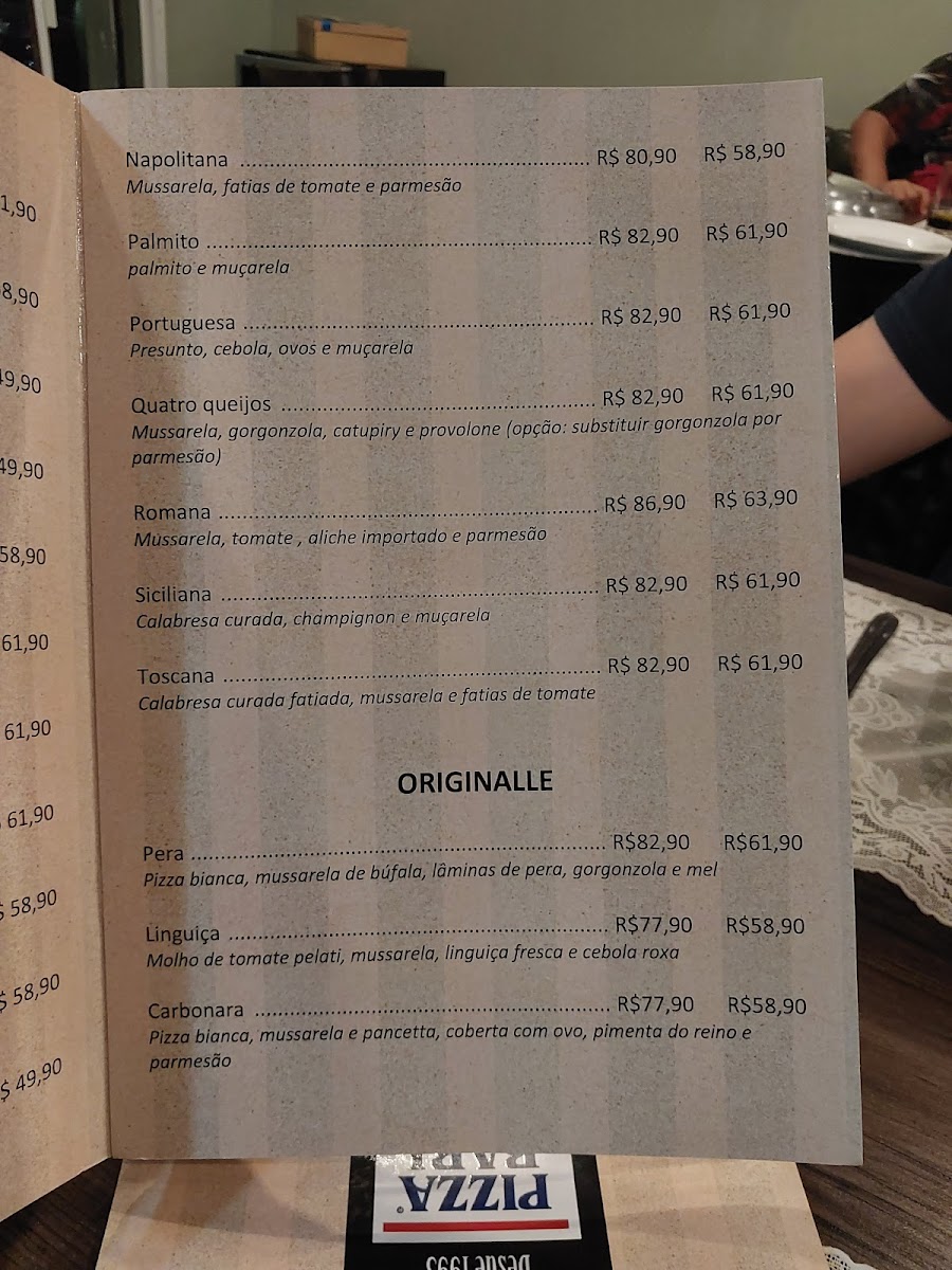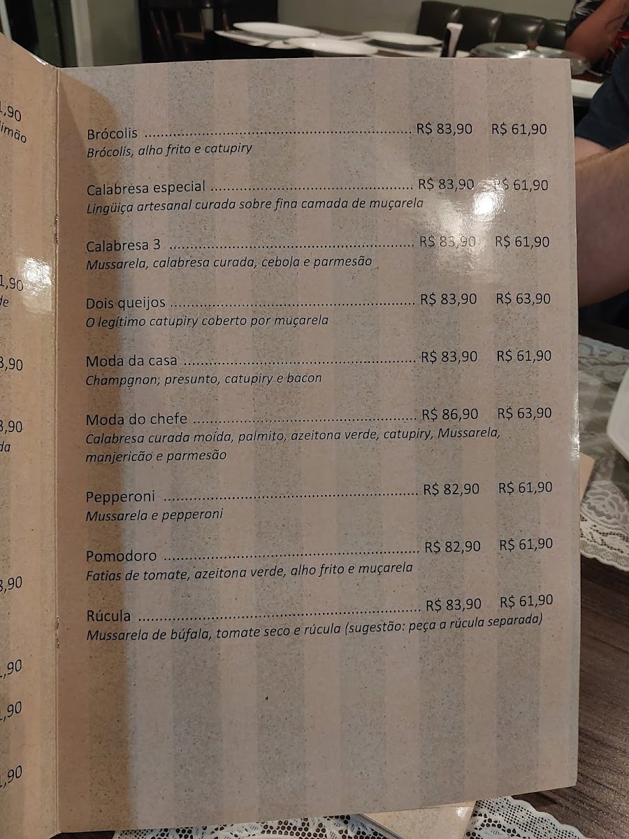 The dessert menu is equally tempting, with options like Torta, Pudim De Leite Condensado, and Cannoli, perfect for rounding off a great meal. Lastly, the Calzones are an excellent choice for those craving a hearty, folded pizza experience.